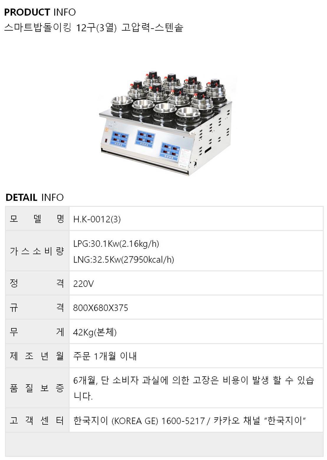 밥돌이킹 12구(3열) - 압력형(스텐)